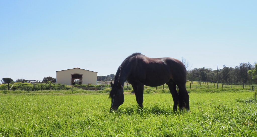 Sin duda, muestro mayor orgullo! Disponemos de 6 hectarias de pastos verdes, vallados y la mayoría con sombra natural. Los pastos  están sembrados con una mezcla de hierbas específicamente adaptada al las necesidades de caballos.